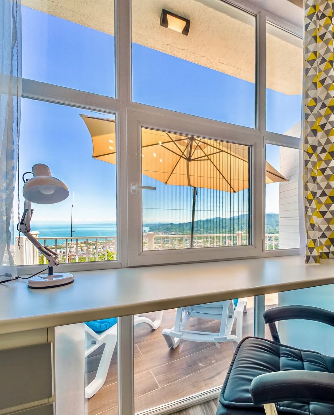 სადგურთან ახლოს. ვილადან მოჩანს ზღვის ქალაქის პანორამული და
