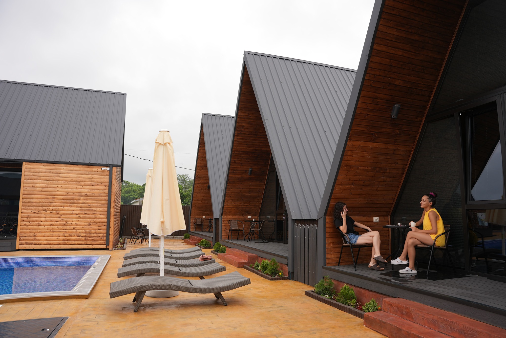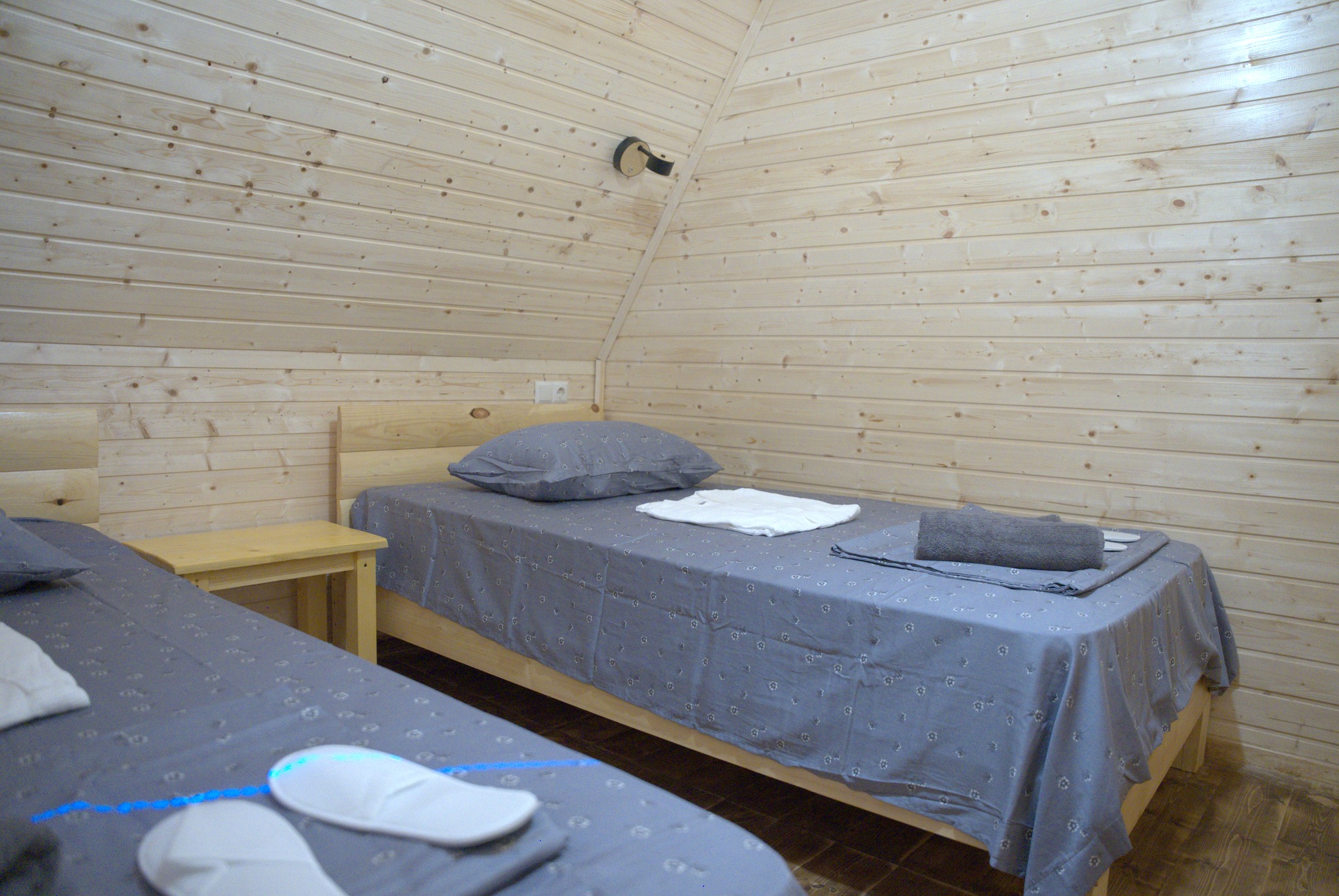 3 კოტეჯში განთავსთება 12 ადამიანი, საჭიროების შემთხვევაში იშლება დივანი ყველა კოტეჯში.