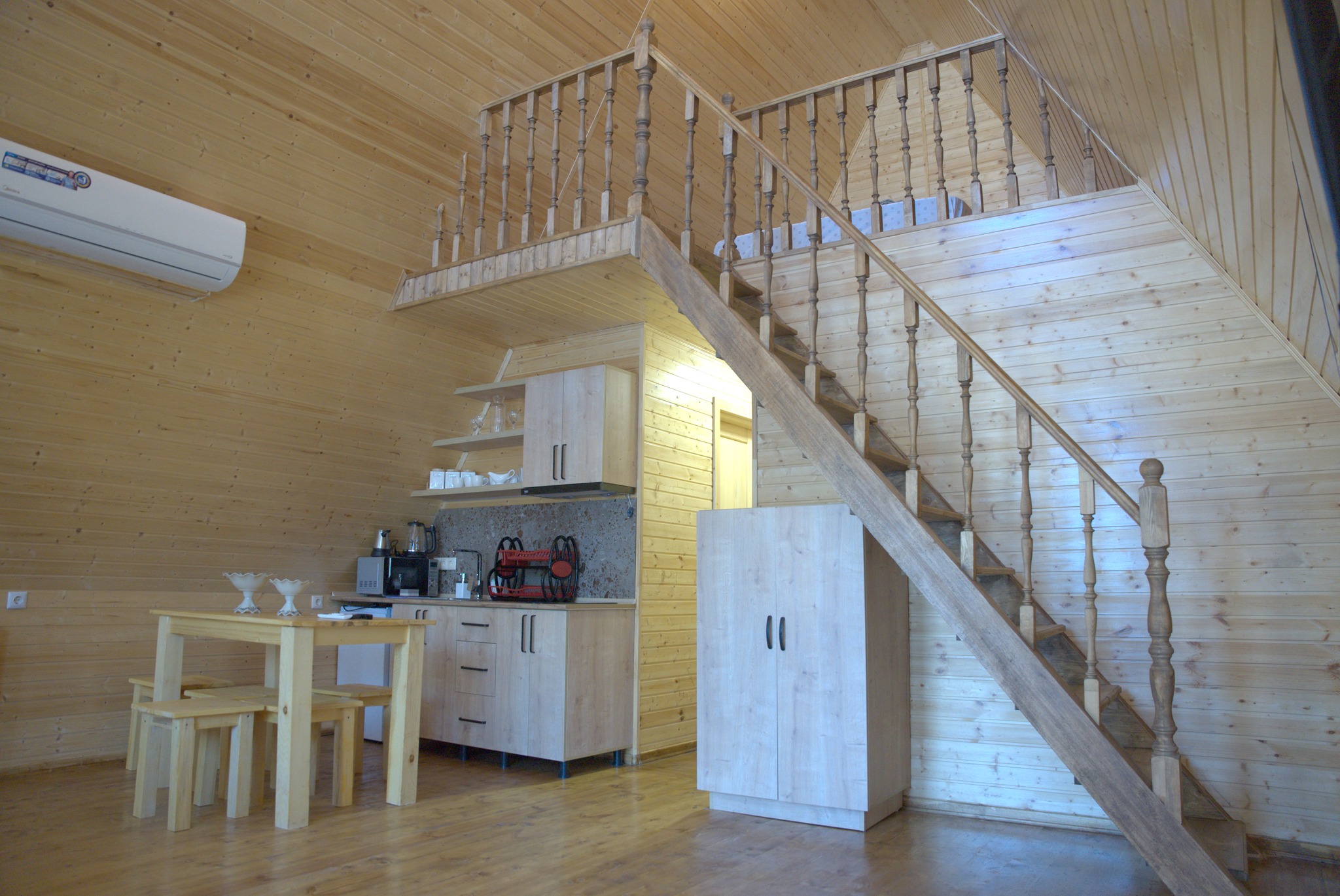 1 დიდი კოტეჯი: 6 ადამიანი განთავსდება, საჭიროების შემთხვევაში იშლება დივანი.